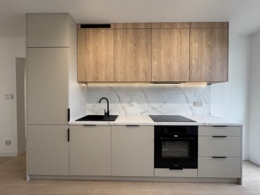 • Zmiana układu funkcjonalnego mieszkania – przeniesienie kuchni do dużego pokoju