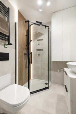 • Na podłogach wysokiej jakości gres oraz panele podłogowe