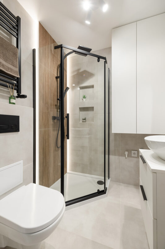 • Wymiana kompletnej instalacji elektrycznej (zmiana na instalację 3-fazową) oraz wodno-kanalizacyjnej